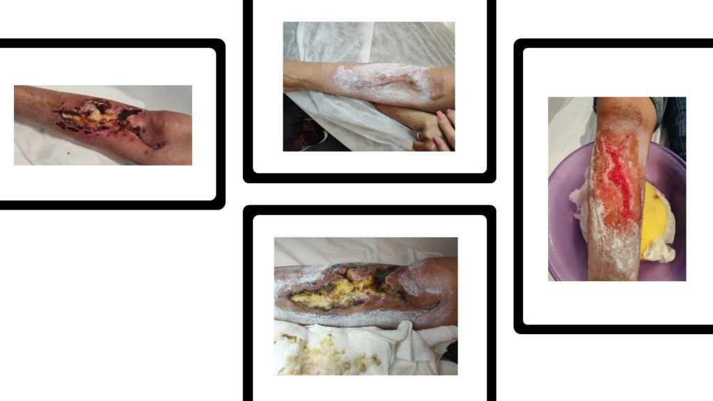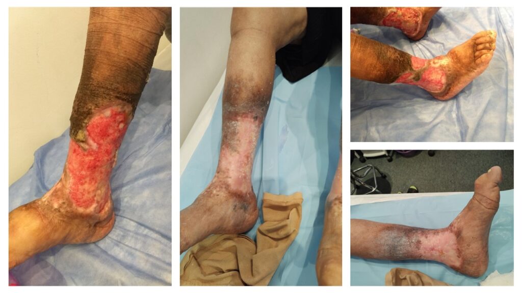 Entre los ejemplos más comunes de este tipo de heridas se incluyen las úlceras en las piernas, el pie diabético en pacientes con diabetes y las úlceras por presión (escaras) que suelen afectar a personas con movilidad reducida o postradas.
